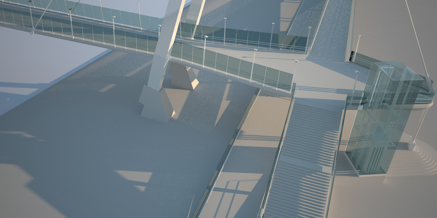 Through the asymmetrical disposition of both bridge piers and fanned arrangement of the