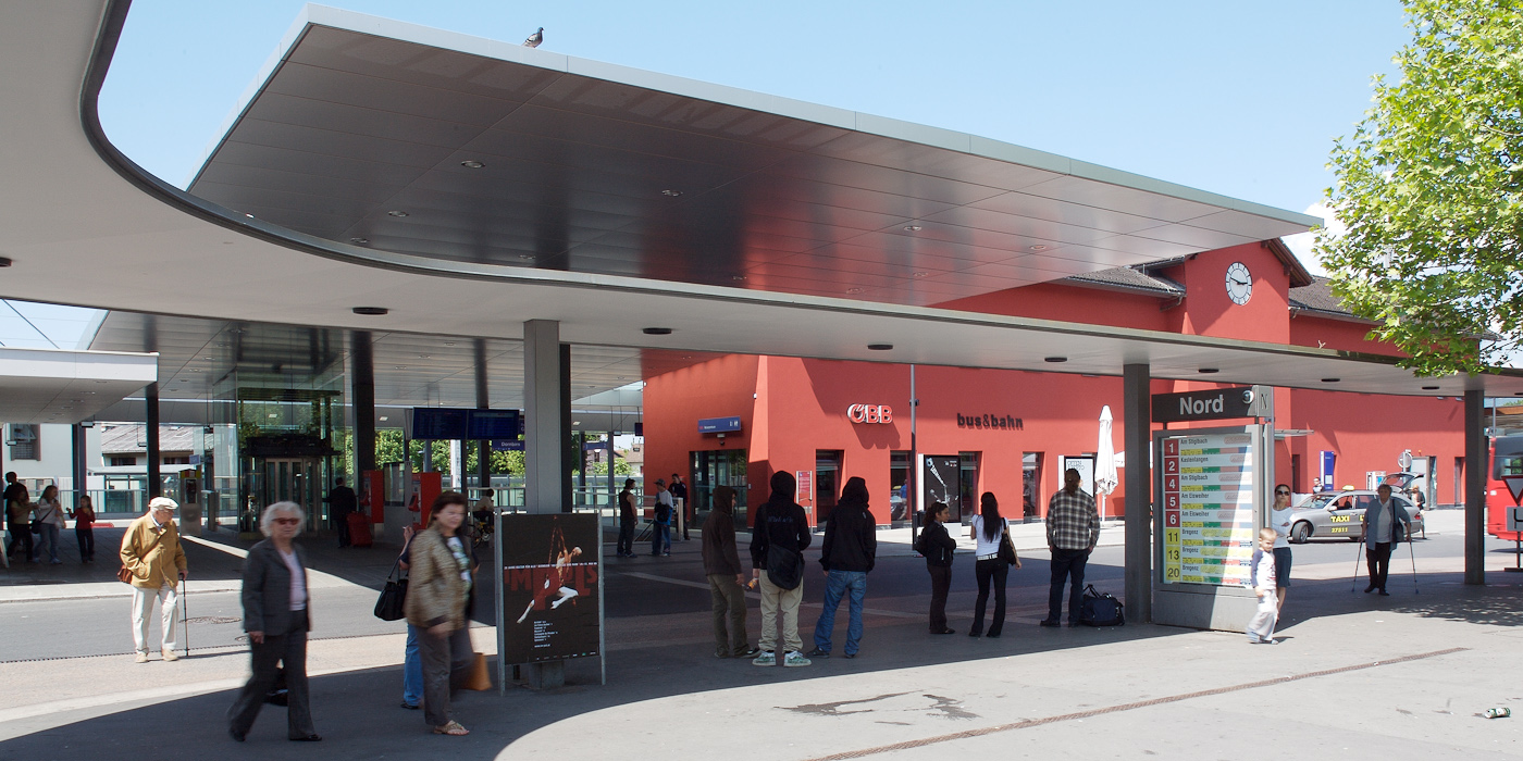 Buses, the railway and bicycles form a multimodal network at Dornbirn Station. A new design for the square and entry approach area, a bike&ride garage with a bicycle underpass and a park&ride zone.