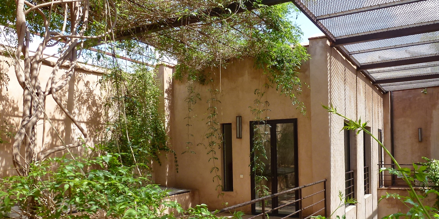 Construction of an atelier-and residential house with a large garden in Marrakech´s Medina.