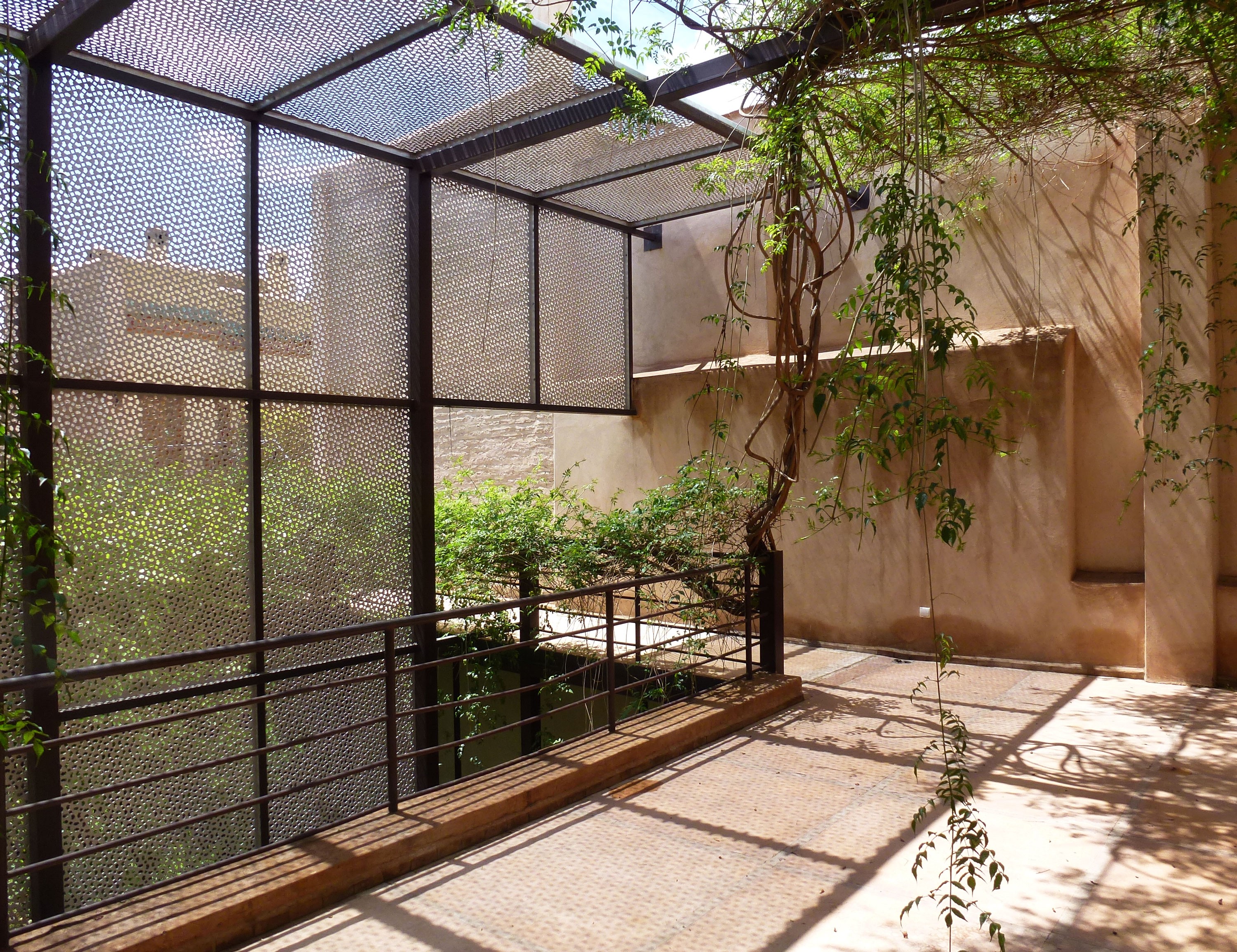 Directly connected to a revitalized historic riad, a new building with living space and studio was constructed in the middle of a large courtyard garden in the medina of Marrakesh.